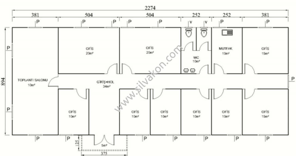 208 m2 Prefabrik ofis