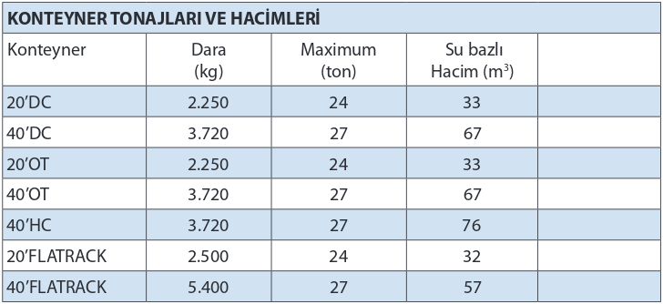 Konteyner içleri spesifikasyonları biraz farklı olabilir, 1 "den daha az varyasyona sahip olabilir.