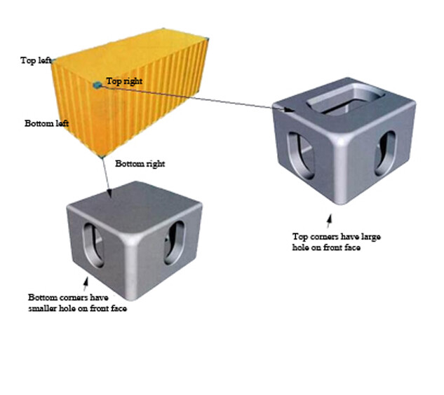 ISO 1161 standardına uygun döküm çelik bağlantı elemanıdır. Konteynerlerin taşınması, istiflenmesi ve twistlock sistemi ile sabitlenmesinde kullanılır.