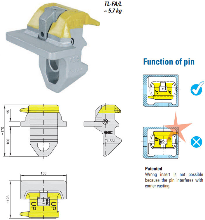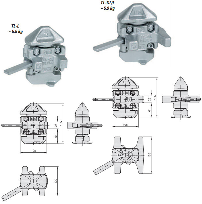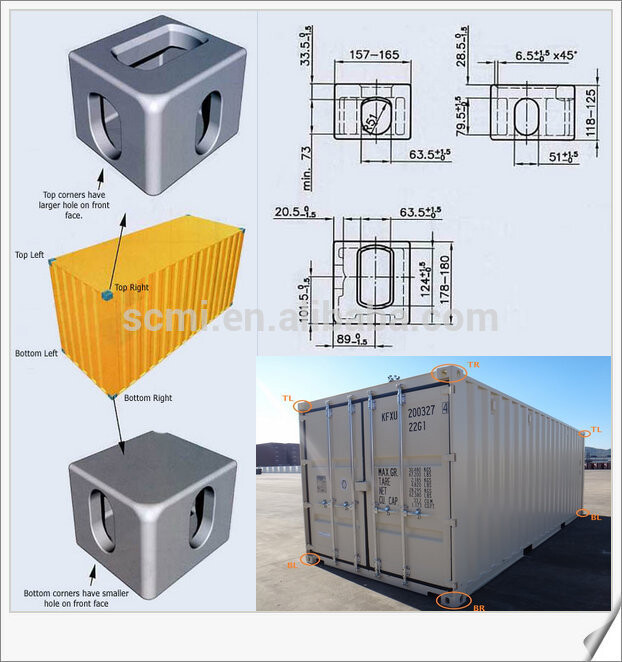 ISO uyumlu döküm çelik bağlantı bloklarıdır. Twistlock sistemleri ile tam uyumludur.