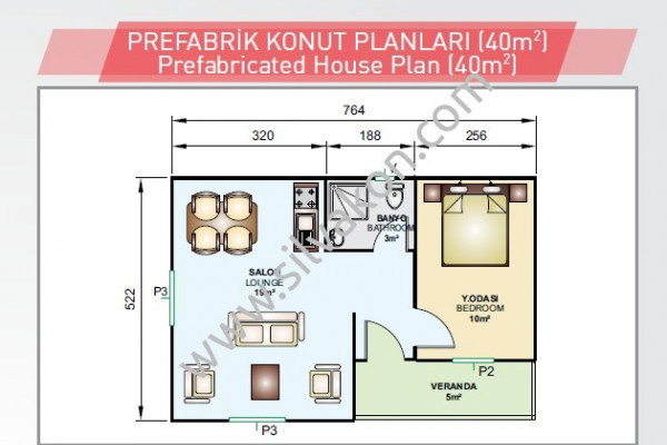 Prefabrik evler için 40 m2 tek katlı prefabrik konut hızlı ve kolay kurulumunun yanında uygun fiyat avantajı var.